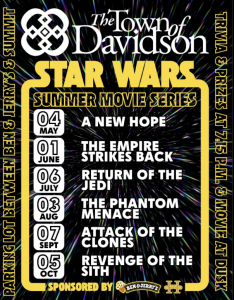 The Town of Davidson, in partnership with Ben & Jerry’s Davidson, is hosting a free, family-friendly Star Wars Summer Movie ...