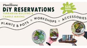 Our DIY workshop is open daily for terrarium building, candle making and more! Sign up to reserve your time slot.